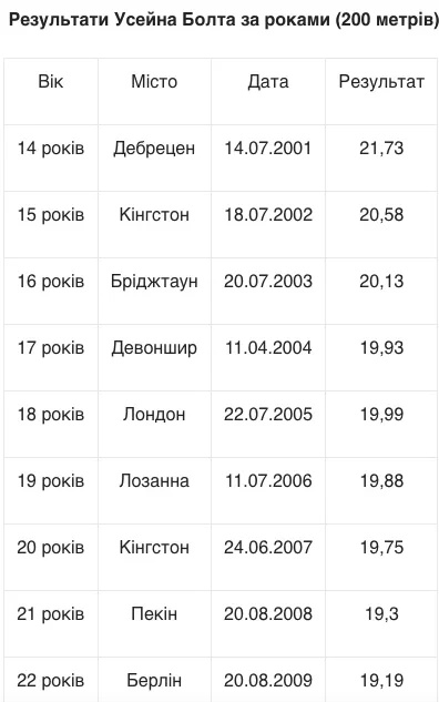 По‑друге, окремим блоком варто виділити діючі світові рекорди — 9,58 с на 100 м, 19,19 с на 200 м і рекордні результати в естафеті 4×100 м, із чітким акцентом, що станом на 2026 рік жоден із них не побито.